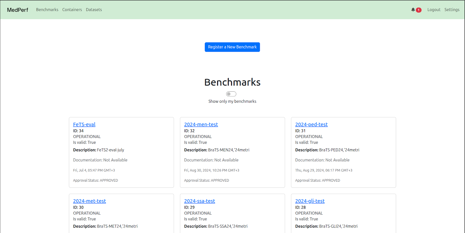 Today, we are announcing that MedPerf has added WebUI capabilities, making it easier for benchmark creators to orchestrate. The WebUI extends Medperf’s capabilities to the browser, providing an intuitive interface built on its CLI. Running entirely on the local machine, the WebUI executes the same commands and functions as the CLI, offering a more visual, accessible way to interact with Medperf without changing how it works under the hood. Access is secured by a unique token generated at launch, ensuring that access remains restricted to the user who launched it. By combining the power of the CLI with the convenience of a browser, Medperf WebUI aims to deliver a user-friendly experience to all Medperf users, including non-technical experts (e.g. clinicians).