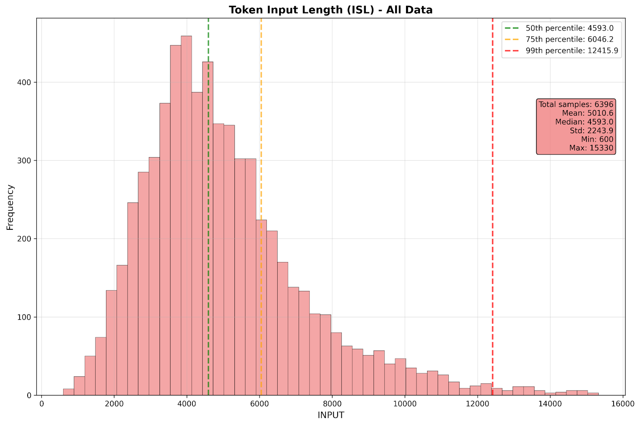 - Mean input sequence length: 5,000 tokens