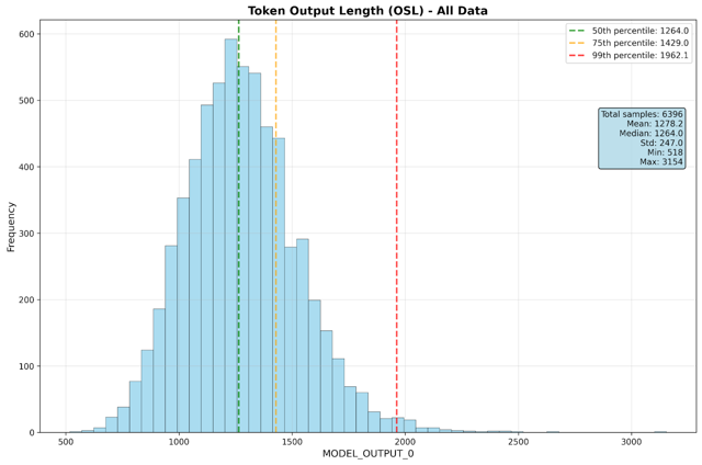 - Mean output sequence length: 1,250 tokens